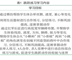 本文通过游戏化的跳跃课时设计(表1),帮助学生掌握结构化的知识与技能,为学习更复杂的运动技能奠定基础。 一、聚力生活化,创设教学融合路径 教师可以结合学生的生活经验创设生活实际情境,通过将体育知识与生活实际相结合,让学生切身体会教学内容的同...