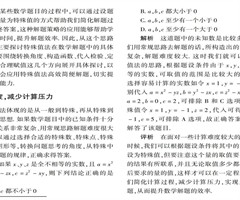 摘 要:特殊值法可理解为对题目中未知量取具体的数值,代入有关代数式进行计算,从而实现简便高效的解题.对此,本文着重探讨特殊值法在高中数学解题过程中的具体应用,帮助学生掌握这种数学解题技巧,探寻数学解题新思路,能够举一反三、灵活变通地应对不同...