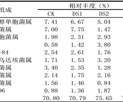 摘要:以连作障碍的党参种植土壤为研究对象,设置空白对照(CK)、单施复合肥(DS1)、复合肥 + 微生物菌剂1(DS2)复合肥 + 微生物菌剂2(DS3)4个处理,采用Iumina NovaSeq6000 测序技术,分析不同施肥方式对党参土...