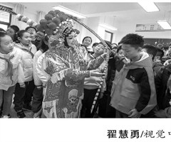 翟慧勇/视觉中国 2023年11月13日,江苏南通海安高新区海光小学教室内,文化志愿者指导小学生练习戏曲动作。海光小学将戏曲课程引入第二课堂,让学生们近距离感受传统艺术的魅力。...