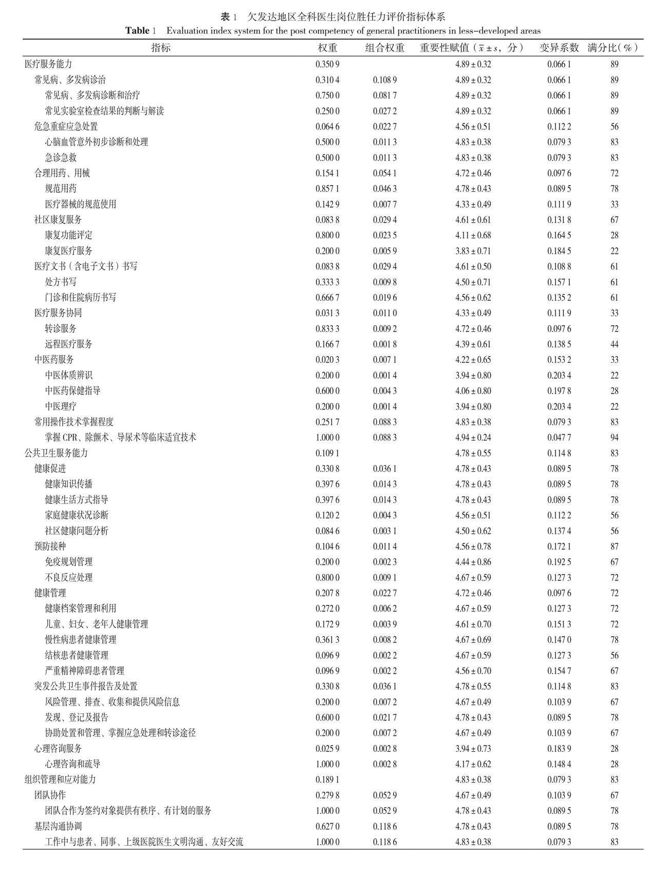 欠发达地区全科医生岗位胜任力评价指标体系研究