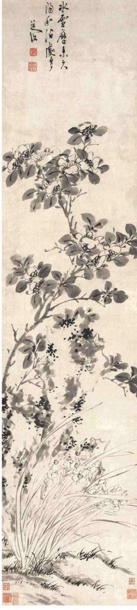 陈淳(1483—1544),字道复,号白阳山人,作为写意花鸟画的典型代表人物,其画作留给世人美好的享受。水仙纯净典雅,别名“雅蒜”,寓意美好。陈淳酷爱作水仙,其所绘水仙有一个共性特征,就是只作花叶和花朵,根茎部位绝不显露,却能稳稳立于画面,可谓见雅不见“蒜”;所有水仙的叶片在底部聚拢一簇,周边或傍依湖石,或简单用干笔略微皴擦,为水仙提供土壤化环境,使其向上无限生长,向下深植土壤,露天藏地。(剩余5158字)