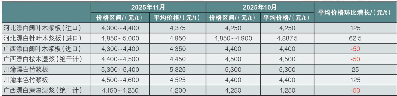 2025年11月纸浆价格变化情况具体如下: