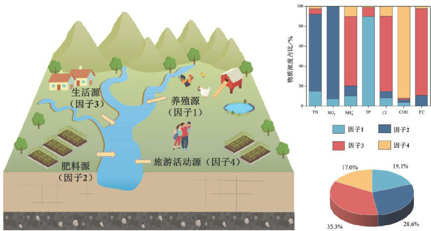 Abstract:Torevealthespatiotemporaldistributioncharacteristicsofwaterqualityanditsolutionsouces,thisstudyfocusdnthe Puzheheiwatersed,atypicalarstagiculturalwatershdinsouhwestCina.Basedon448surfacewatersamplescollctedbtwn2 and2023,muivaratestatisticalanalysisandtheositiveMatrixFactorzation(MF)modelwereemployedtosystematicallvegate thewatersedesultsevaltatTTndganicltatsdoateaterualitydegradationinteuzwatedih pronouncedspatiotemporalvariabilty.TandNO-Nconcentrationswereelevatedduringtherainyseasonprimarilyinfluencedby rainfall-drivenrunofTandN-Noncentratiosreigherduringthedrysason,linkedtolivestockfinganddomsticsewage discharge.CODandfecalcoliform(FC)concentrationspeakedduringthetourismseason,reflectingtheimpactoftourismactivitieson water quality.The PMF model revealed that the primary polution sources in the watershed were domestic sewage( 35.3% ),followed by agricultural fertilization(28.6 % ),livestock farming( 19.1% ),and tourism activities ( 17.0% ).These sources demonstrated significant spatialeterogeisultsidcateatstregthngtorolndertilerlosproingtageetoftoc wastewater,andenhancingdomesticsewagetreatmentduring thetourismseasonaeessentialforlong-term watershed protection.