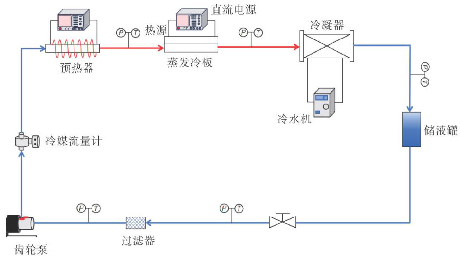 随着电子设备向大功率、高集成化发展,散热问题日益突出,高温已成为造成设备故障的主要原因。泵驱两相流冷却系统作为新型主动散热方式,因具有优异的传热能力和运行稳定性而受到广泛关注[1-4]