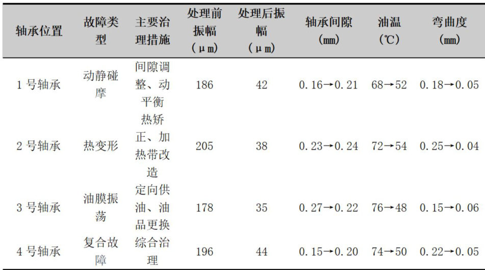 以某火电厂300兆瓦亚临界汽轮机组为例,研究其振动故障成因及解决方法。该火电厂机组型号为N300一16.7,由高、中、低压三缸组成,额定转速 3000r/min ,汽轮机运行相对稳定。在某次振动故障中,1号轴承振动值突然飙升至192微米,且降负荷处理后仍维持在130微米高位。在紧急停机检修后发现了一系列问题:轴承存在明显碰摩痕迹与间隙偏小现象,转子弯曲度达0.22毫米超出标准值0.1毫米,轴承油温异常升高至 75∘C ,油质黏度明显下降。(剩余2732字)