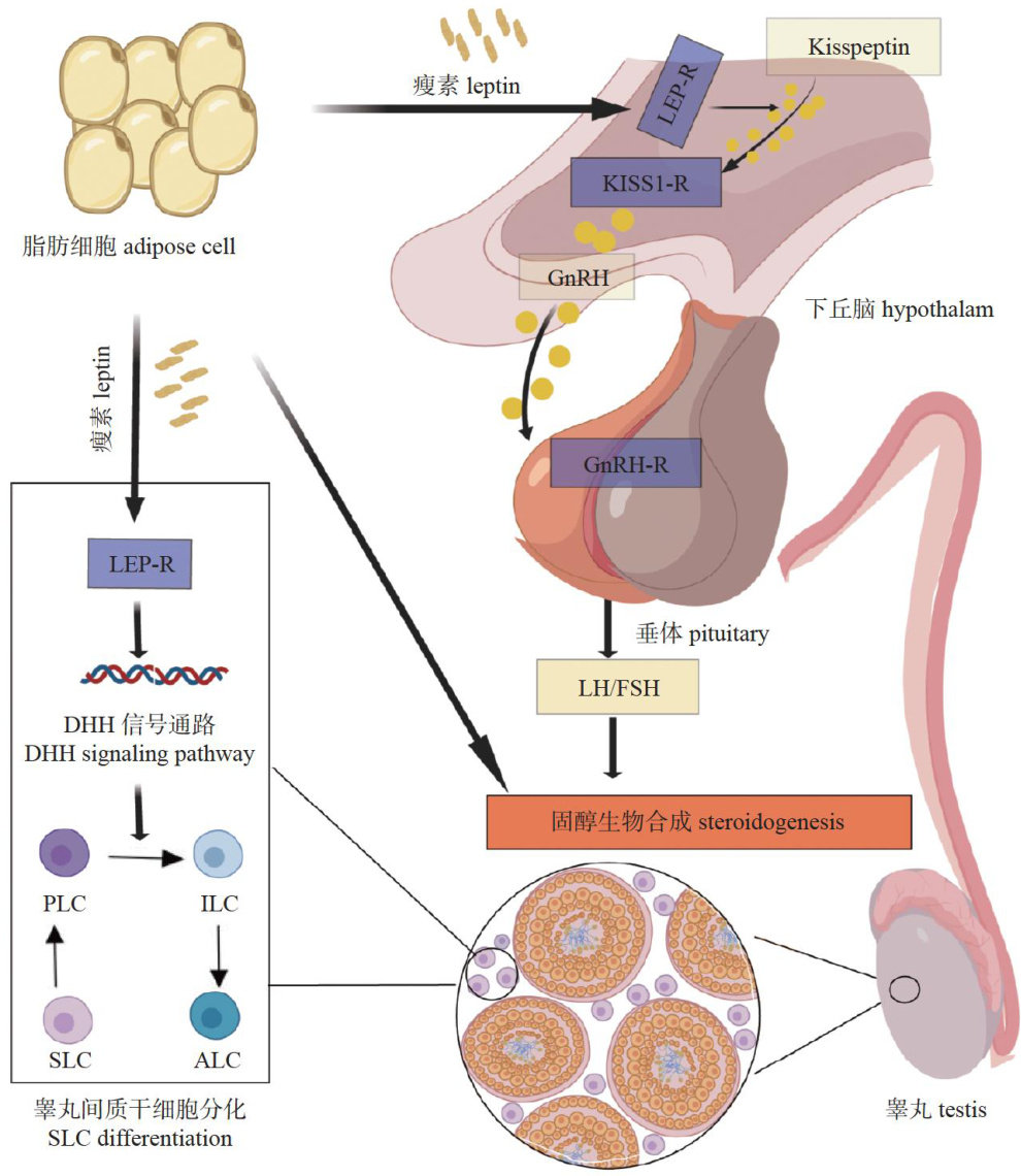 Abstract: [Purpose] As a key metabolic hormone, leptin is recognized not only for regulating appetite and energy balance, but also for its significant influence on male reproductive health. This paper reviews the involvement of leptin in testicular function, spermatogenesis,steroid biosynthesis,and related signaling pathways, summarizing and assessng recent research progress regarding the role of leptin in the regulation of male reproduction, providing a reference for future research and clinical applications, as wellas theoretical support for livestock breeding and selection in animal husbandry.