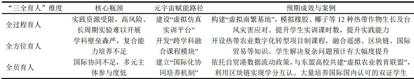 基于“三全育人"的元宇宙赋能海南自贸港新农科人才培养创新路径研究