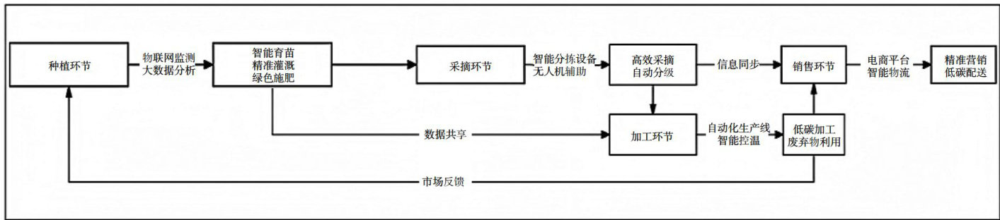 Abstract:Undertheconstraintsofthe"DoubleCarbon"goal,digitalempowermentoftheagriculturalindustryhasbecome thecorepath toachieveitssustainabledevelopment.ThispapertakestheentireJizepepperindustrychainastheresearch objectadsystematicallanalyzesthedevelopmentdificultiesfacedbytheindustrychaininplanting,picking,proesing,sales andtransportationunderthe"DoubleCarbon”goal.Diffcultiessuchasresoureconsumption,excessvecarbonemissionsandlow industrialaddedvalue.Onthisbasis,itrevealsthemechanismofdigitalinteligenceempoweringthepepperindustrychain: Throughtechnologicalinnovationandprocessreenginering,wecanefectivelybreakthroughtheresourceandenvironmental constraintsoftraditionalindustries,achievepreciseiigationandfertlizationinteplantingproessndpromotelowcarbon productionandsales.Optimizelgisticsanddistributioninthetransportationlinktocomprehensivelyreducethecarboneision intensityoftheindustrialchain.Atthesametime,relyingondigitalandintellgentmeanstohelpoptimizevarieties,upgrade deepprocessingandbrandbuilding,significantlyincreasetheaddedvalueoftheindustry,andultimatelyformasustainable development model in which environmental benefits and economic benefits work together.