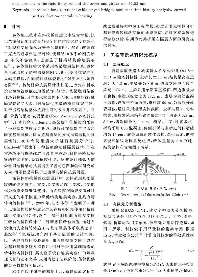 基于基础隔震理念的转体斜拉桥抗震性能研究