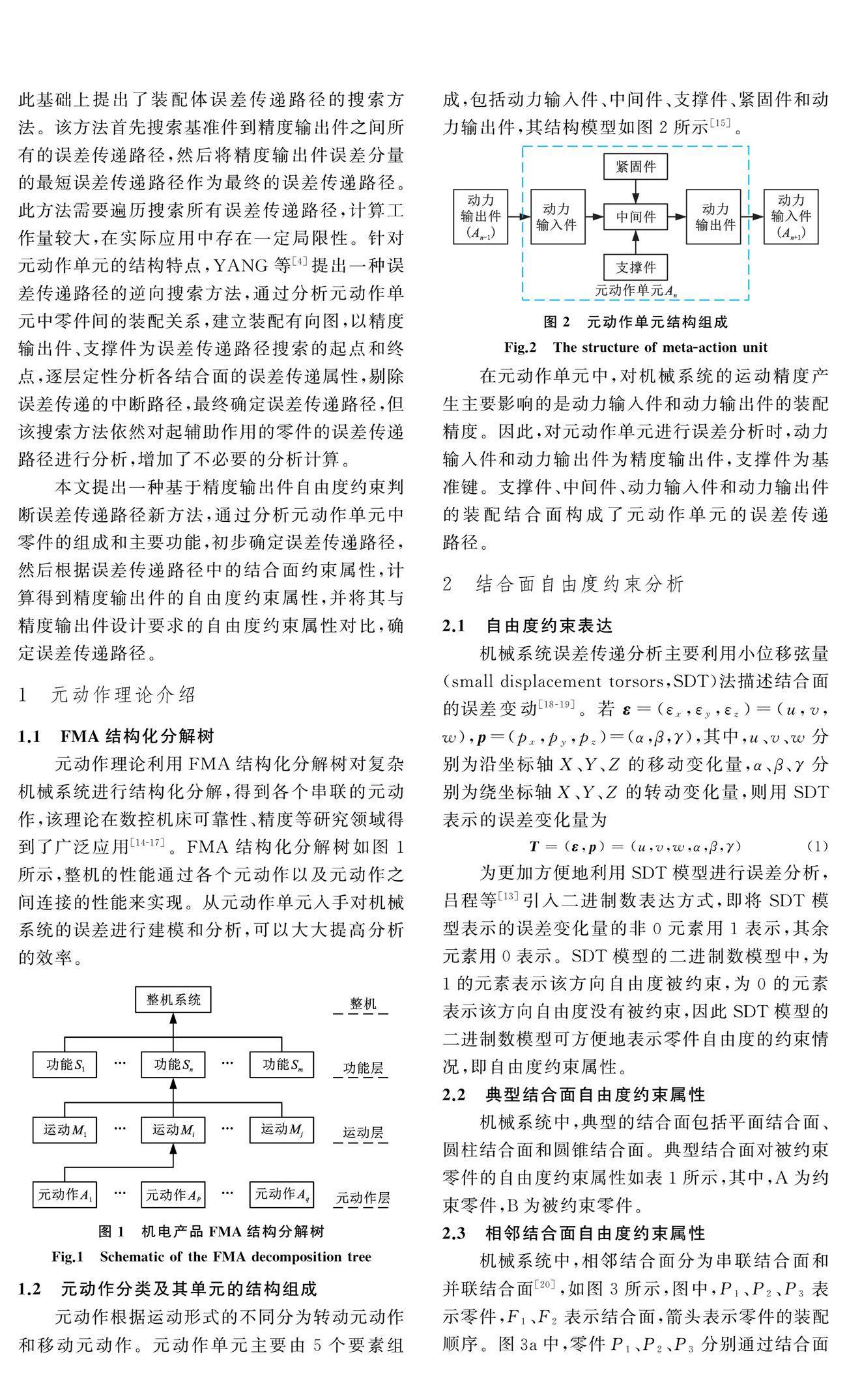 准确识别元动作单元的误差传递路径是误差分析的前提。基于机械系统中自由度约束的概念,提出了一种利用自由度约束判断误差传递路径的新方法。首先,通过分析元动作单元功能和结构,确定精度输出件自由度约束要求并初步确定误差传递路径;然后,分析路径中零件结合面的约束属性,并沿误差传递路径计算精度输出件的自由度约束属性。(剩余13061字)