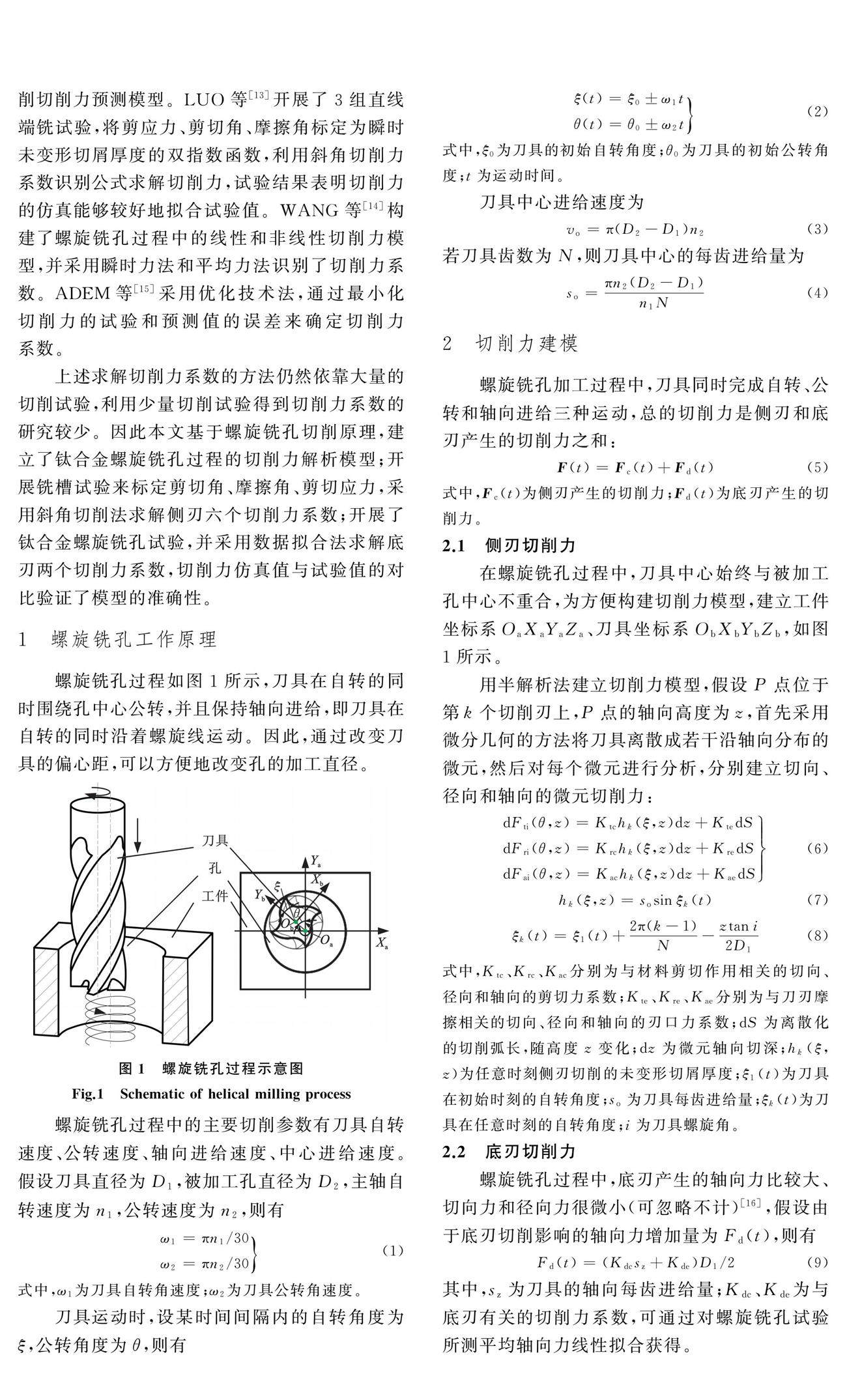 基于斜角切削理论的钛合金螺旋铣孔切削力建模