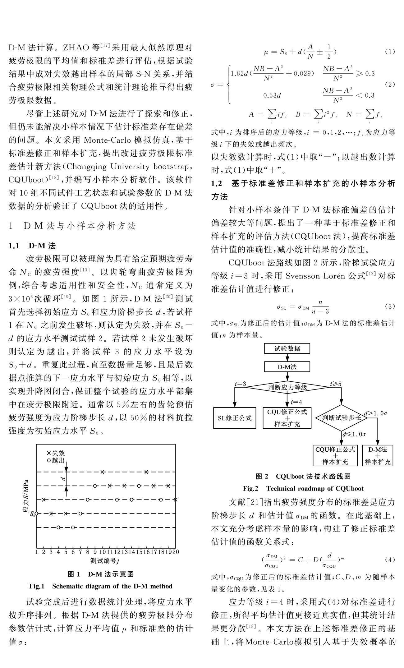 齿轮疲劳极限评估Dixon-Mood(D-M)法的试验样本需求量较大,标准差估计值存在较大偏差,因此基于Monte-Carlo模拟提出小样本的齿轮疲劳极限分析方法(CQUboot),并结合大量弯曲疲劳极限试验对D-M法和CQUboot法进行了对比分析。与GB/T 14230—2021《齿轮弯曲疲劳强度试验方法》推荐的20~22个样本计算结果相比,样本量降至12时,D-M法的最大误差为15.76%~24.99%,CQUboot法为8.02%~12.98%;以12.66%为疲劳极限预估允许的最大误差时,D-M法至少需要10~18个样本点,CQUboot法只需8个样本点。(剩余12434字)