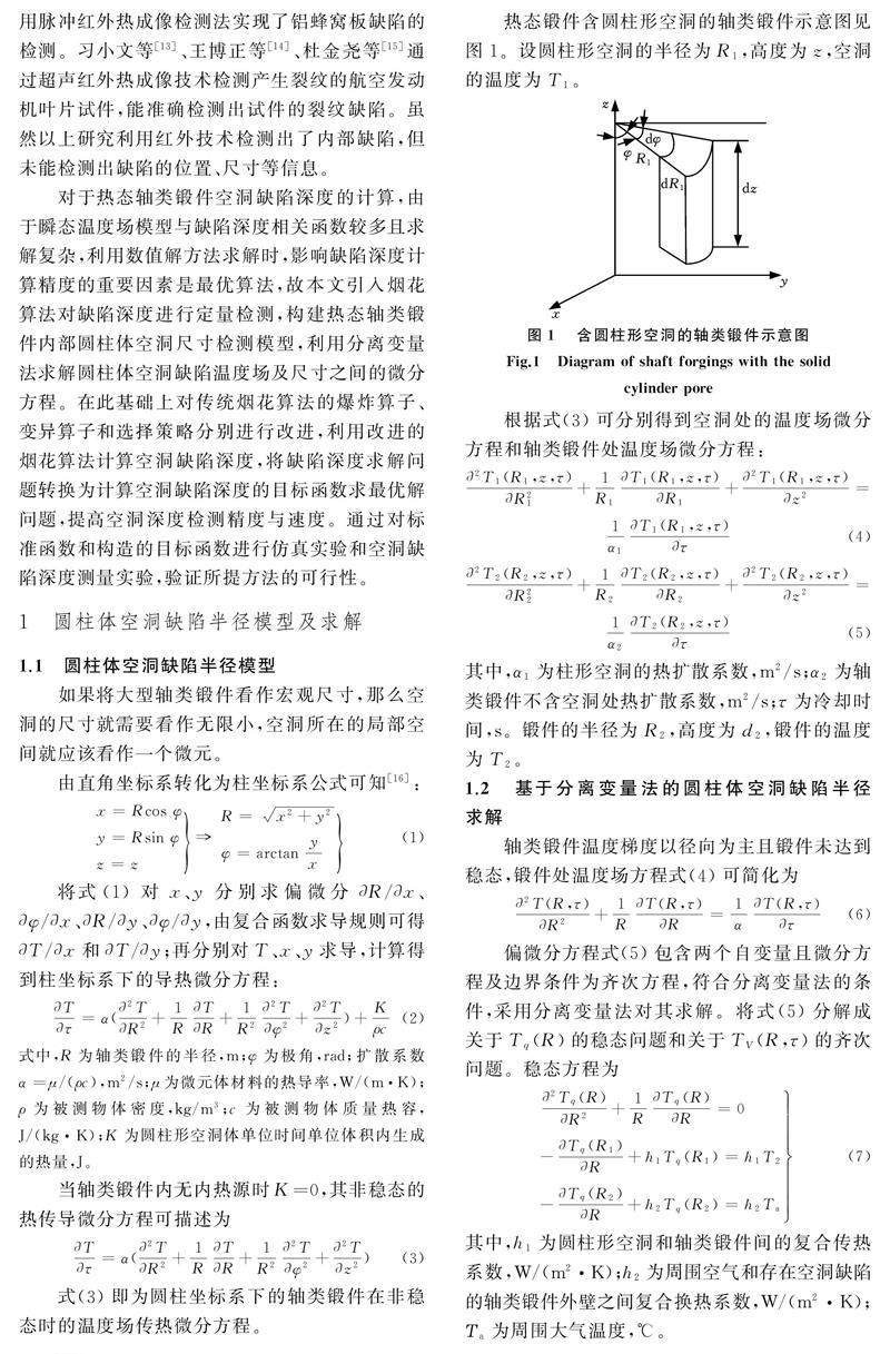改进烟花算法计算热态轴类锻件内圆柱体空洞缺陷深度