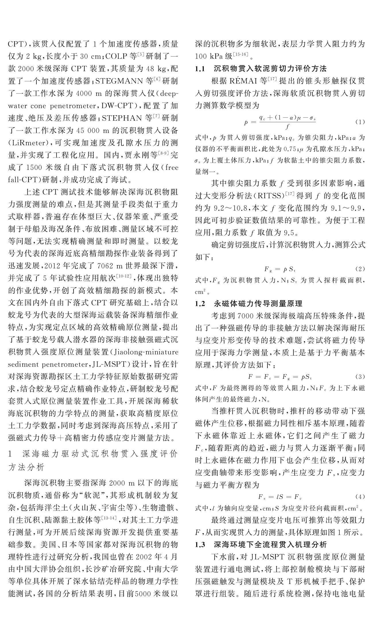 基于蛟龙号载人潜水器的深海非接触磁力驱动式沉积物贯入强度测量装置设计