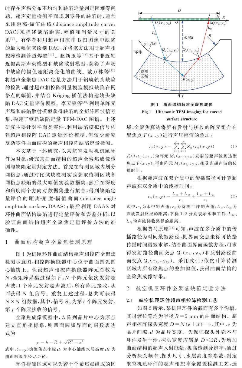 航空机匣环件曲面结构超声全聚焦检测与缺陷定量方法