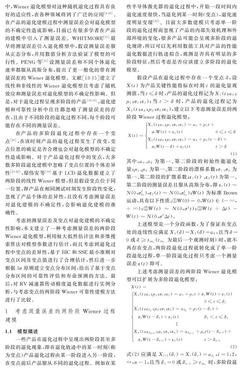 考虑测量误差的两阶段Wiener建模与可靠性分析
