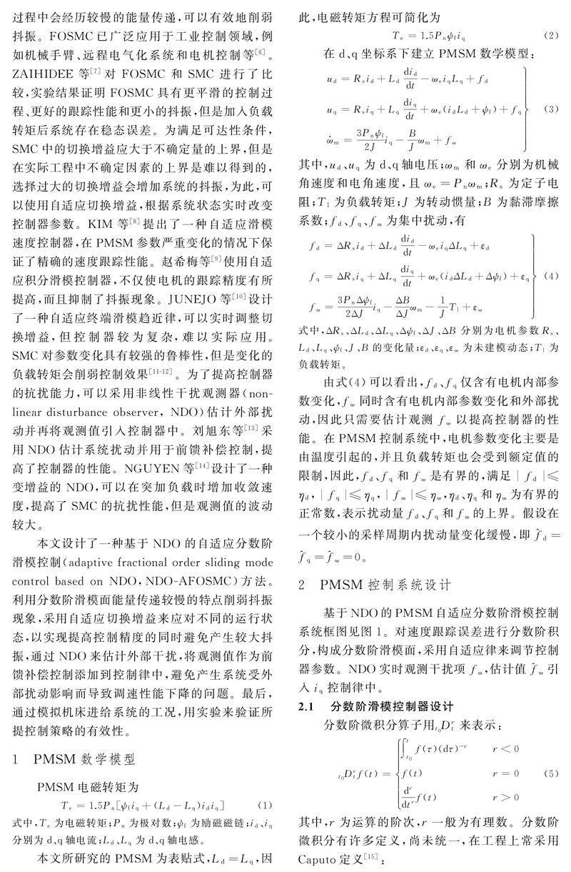 基于NDO的永磁同步电动机自适应分数阶滑模控制
