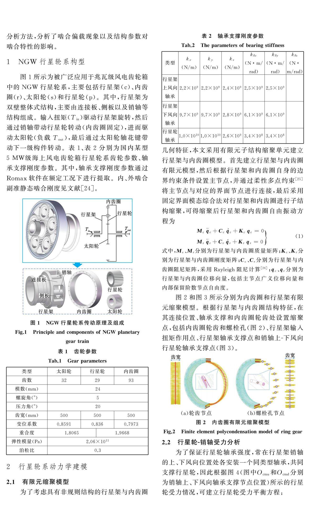 为了深入研究重载行星齿轮传动多柔体变形下齿面载荷分布规律,提出一种计入结构柔性与齿轮副动态接触的行星齿轮传动耦合动力学建模方法。以某型兆瓦级风电齿轮箱行星轮系为研究对象,根据内齿圈、行星架结构及其边界特征,采用有限元缩聚理论建立内齿圈轮齿、行星架耦合点与弹性支撑之间的关联关系,利用齿轮副动态承载接触作为界面协调条件将各构件进行耦合,建立行星齿轮传动耦合动力学模型,分析了啮合偏载现象以及结构参数对啮合特性的影响。(剩余20135字)