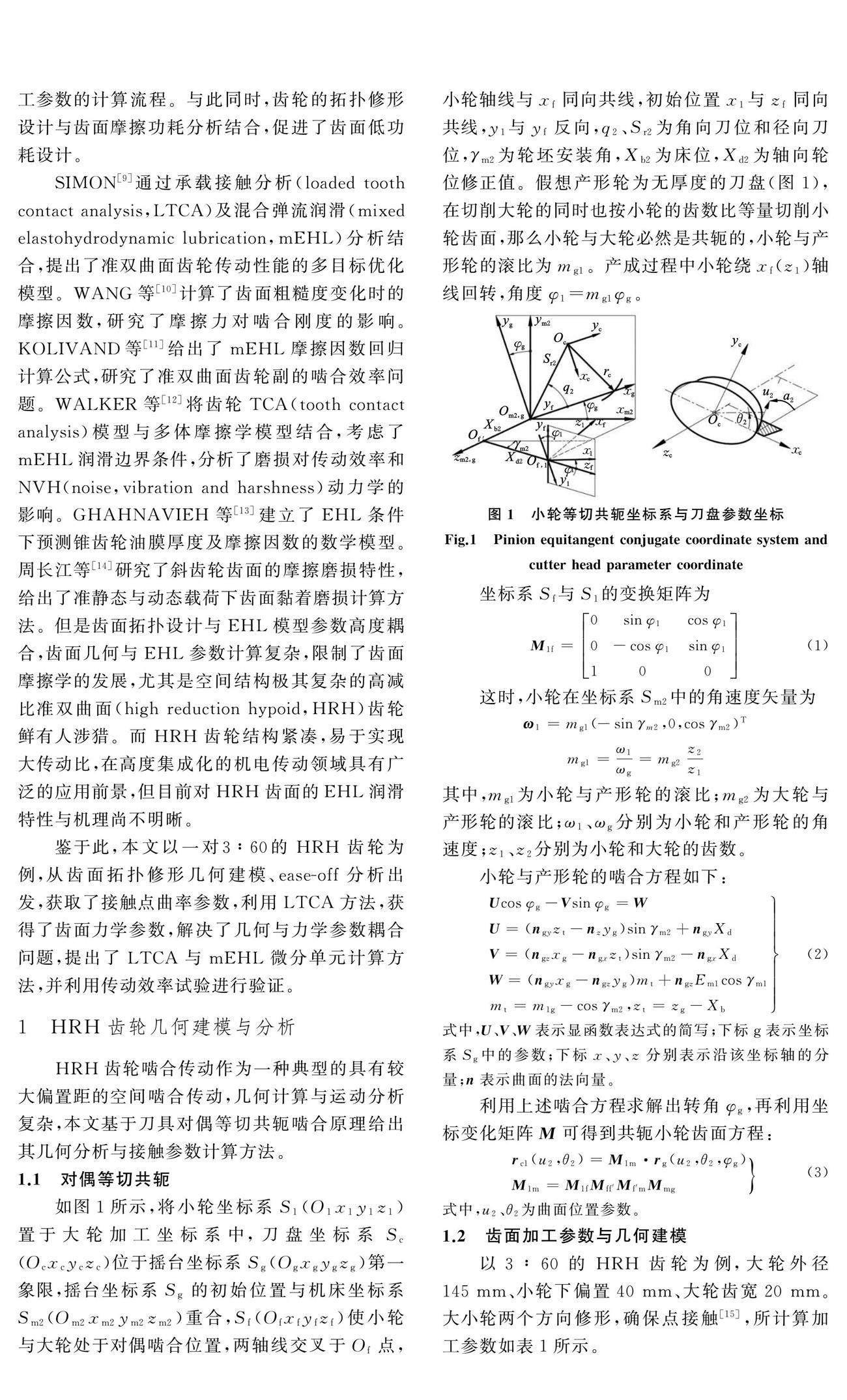 针对高减比准双曲面(HRH)齿轮拓扑曲面复杂的问题,利用对偶等切共轭的方法,构建了HRH齿轮齿面模型与ease-off曲面,解析得到齿面接触点曲率参数、卷吸速度、滑滚比等运动学参数。利用接触线微分单元法建立轮齿刚度、载荷与变形协调方程,进行承载接触分析(LTCA)计算,获得了齿面载荷与接触应力分布规律;结合弹流润滑(EHL)摩擦因数经验公式,解决了瞬时接触区畸变、EHL参数计算问题。(剩余9629字)