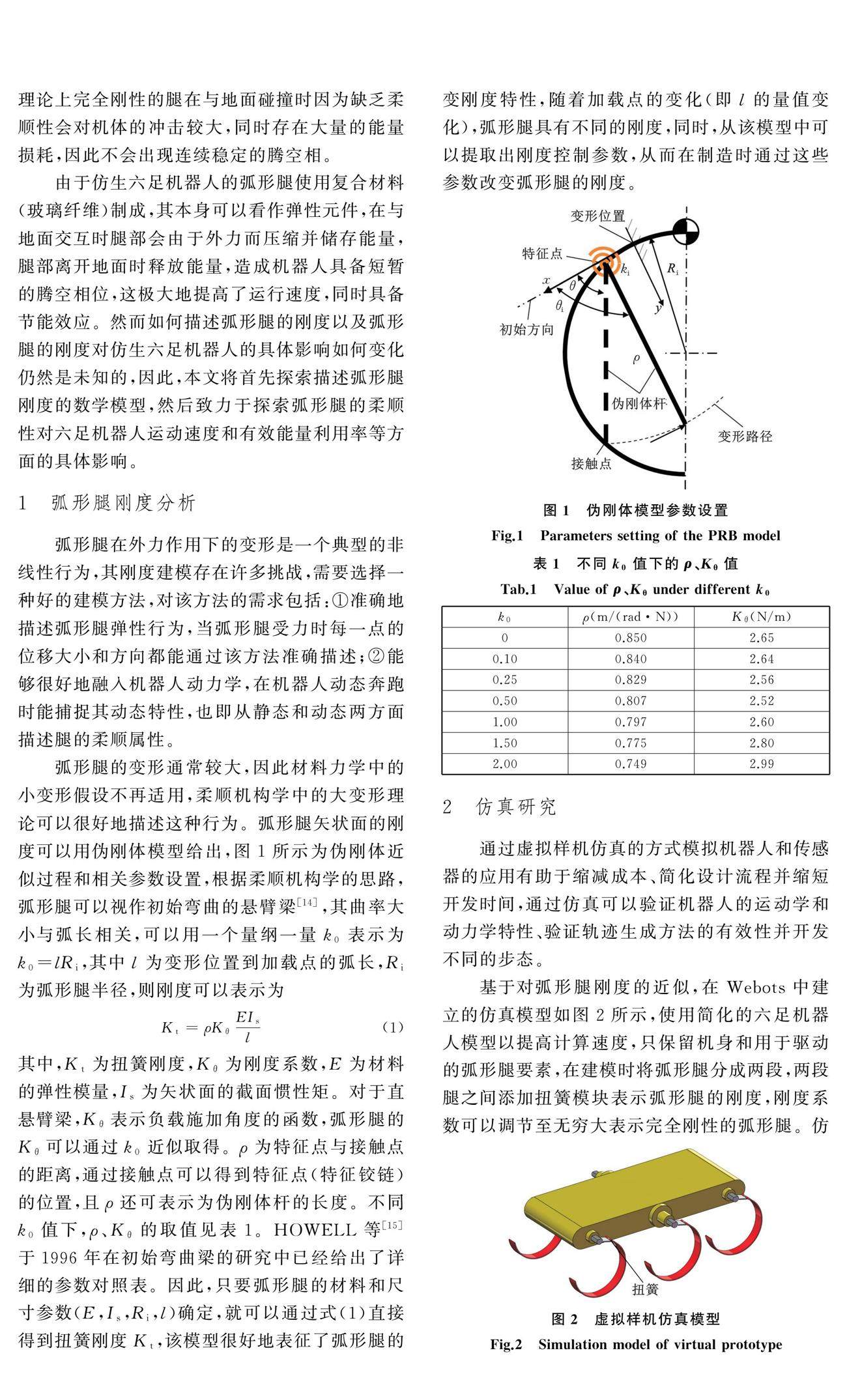 为探索弧形腿柔顺性对仿生六足机器人运动性能的具体影响,首先使用伪刚体模型描述弧形腿的变形特征,并给出了刚度的数学表达;然后基于该刚度模型,在Webots仿真环境中构建虚拟样机,通过设定弧形腿不同的刚度,分析了仿生六足机器人在运动速度、能量消耗等方面的变化;最后通过制作不同刚度的弧形腿在物理样机中进行了验证。(剩余9950字)