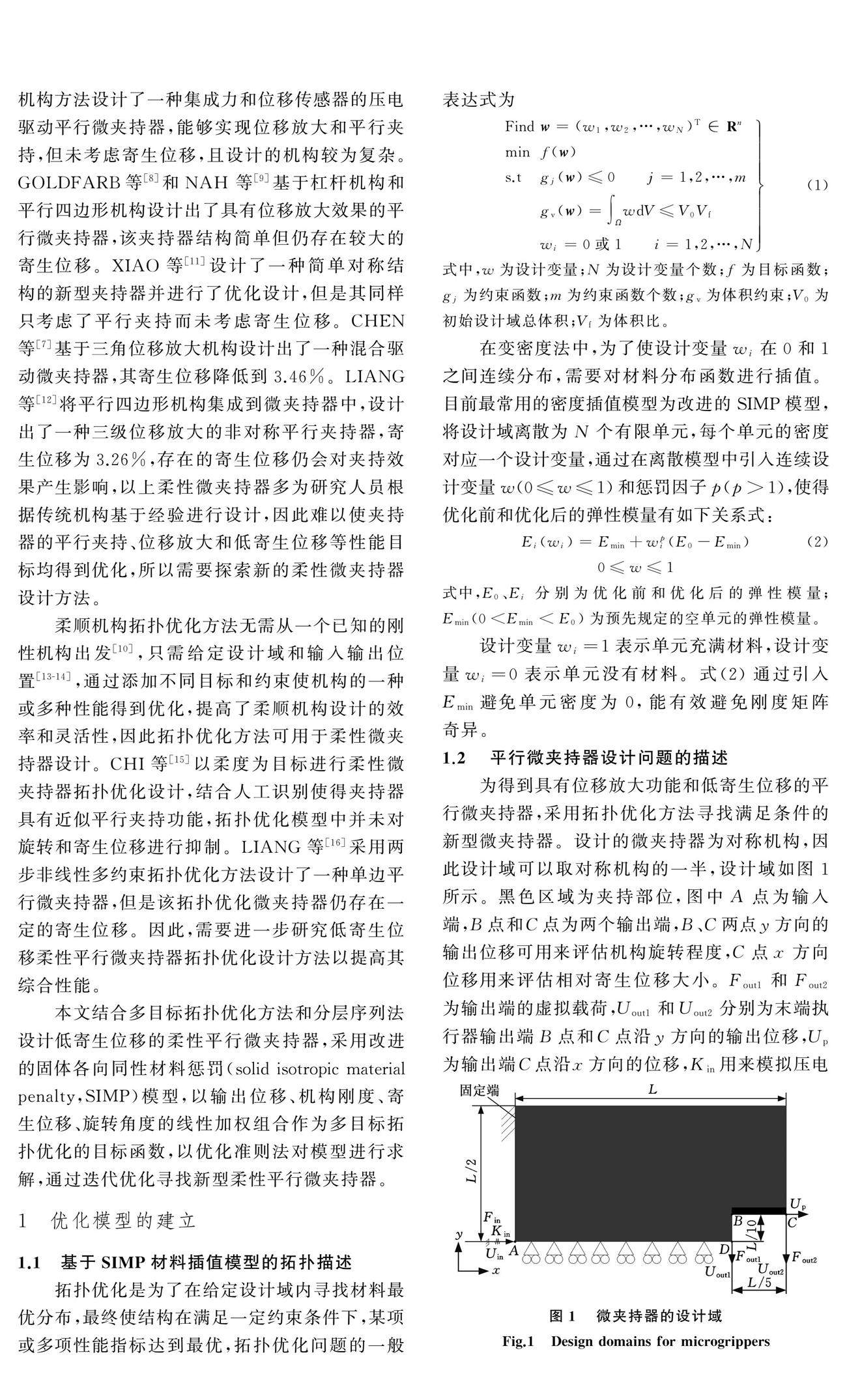 低寄生位移柔性平行微夹持器拓扑优化设计