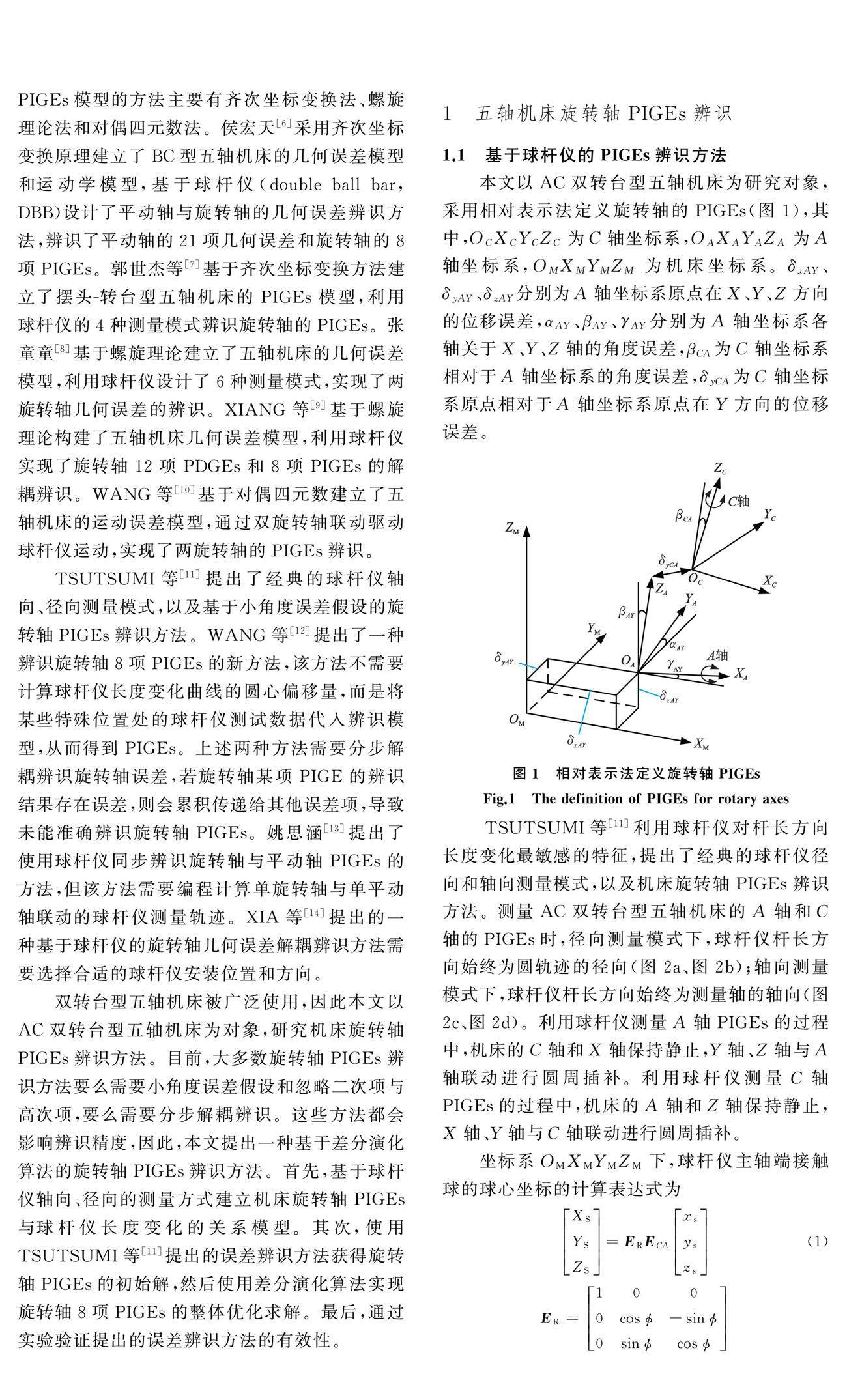旋转轴的位置无关几何误差(PIGEs)是影响五轴机床加工精度的重要因素。以AC双转台五轴机床为研究对象,提出一种基于差分演化算法的旋转轴PIGEs辨识方法。首先,建立机床旋转轴PIGEs和球杆仪杆长变化的关系模型,使用已有的辨识方法获得机床旋转轴PIGEs初始解,然后定义优化目标函数,通过差分演化算法整体优化求解旋转轴PIGEs,提高旋转轴PIGEs辨识准确性。(剩余9000字)