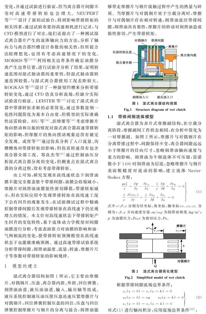 高线速状态湿式离合器带排转矩特性研究