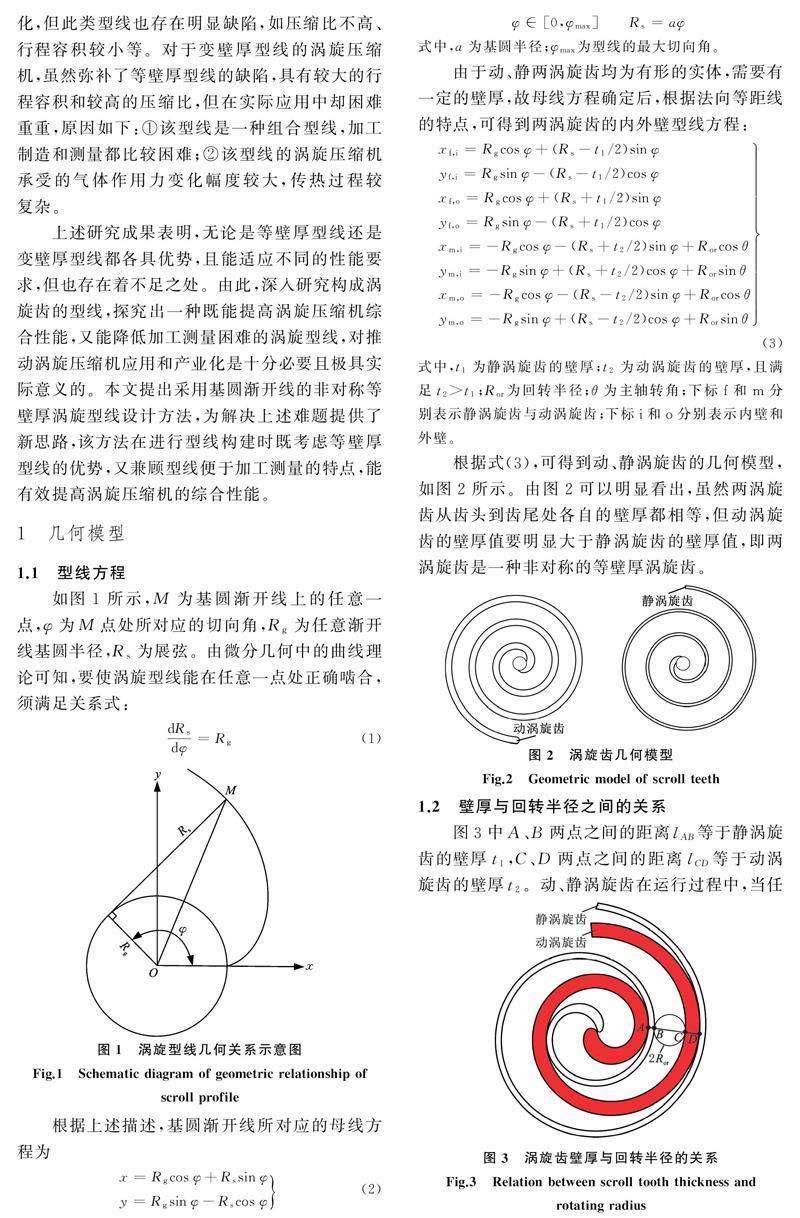 采用圆渐开线的非对称等壁厚涡旋型线设计与性能研究