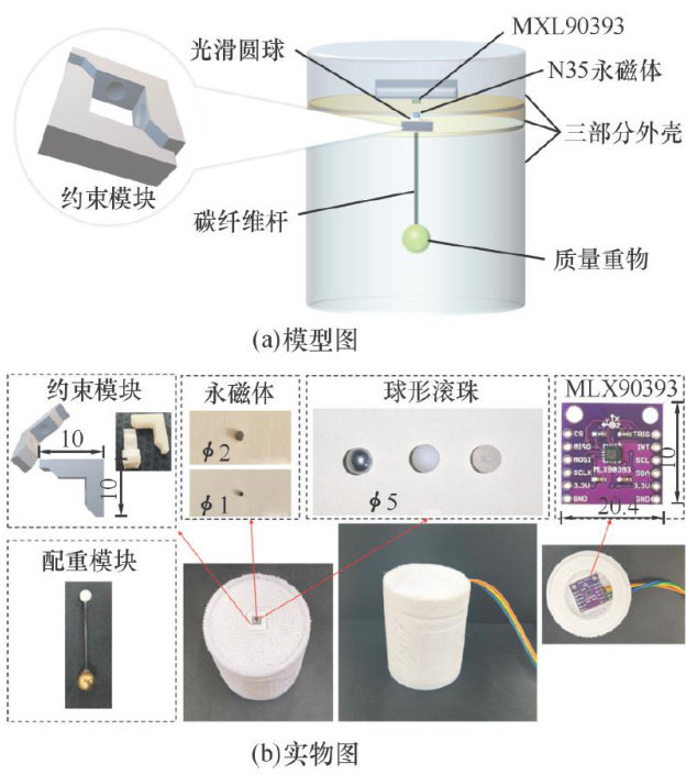关键词:倾角传感器;全向倾角测量;四球冠凹面副;磁-重力耦合