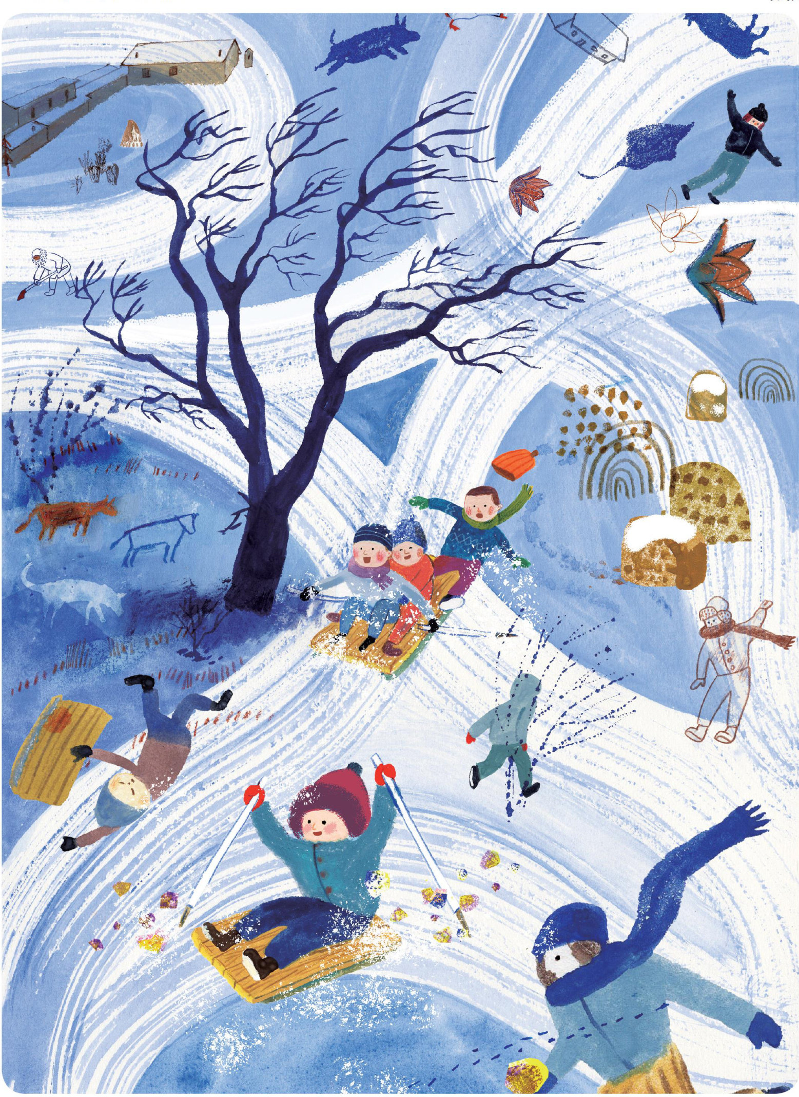 村庄一进入寒冬,西北风刮得无边无际,像是要把所有房屋、人、牲蓄、稻田、树、路和秸秆垛都吹走,我甚至连着做过好几场这样的梦,在梦里飘到了很远的地方。早晨醒来的时候,我的两只脚还不敢落地,担心踩空了。