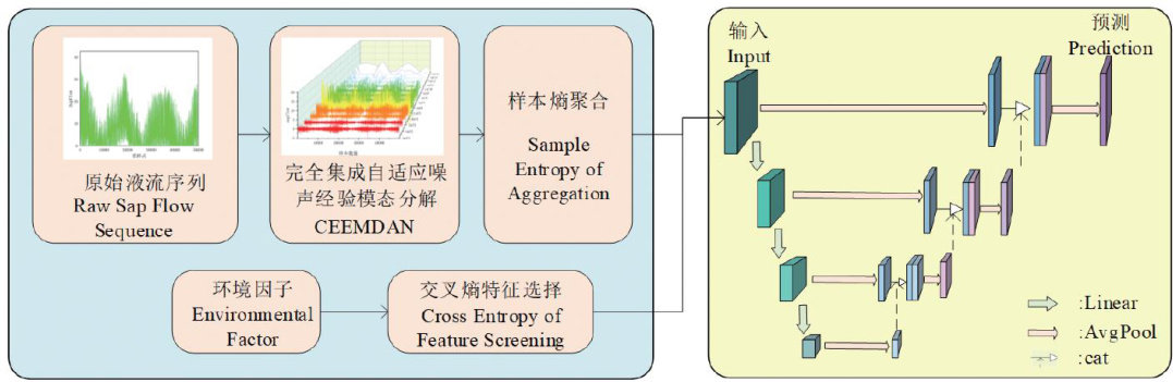 树干液流速率是指反映植物水分运输与蒸腾作用的关键生理指标,对研究森林水文循环与生态系统水分利用效率具有重要意义[1-2]。准确预测树干液流动态,有助于深入理解植物水分关系,并为森林资源管理与水资源优化提供科学依据。