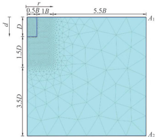 AbstractIn recent years,caisson foundations have gained increasing popularity as a foundation solution for bridge towers and piers due to their favorable mechanical properties.This study investigates the vertical bearing capacity and failure mechanisms of bridge caisson foundations in sand through numerical simulations and theoretical analyses.First,the effects of key parameters—including caisson plan size,embedment depth, and soil efective internal frictionangle—on the vertical ultimate bearing capacity andsoil failure modes are systematically examined via numerical modeling.Subsequently,a theoretical formula for calculating the vertical ultimate bearing capacity at the caisson base is derived.Based on the numerical results,fitting formulas for the geometric parameters of the base failure mode are further proposed,incorporating factors such asembedment depth,depth-to-width ratio,aspect ratio,and soil internal friction angle.The numerical simulations reveal that when vertical failure occurs in the caisson foundation,the base contributes over 90% of the totalbearing capacity,accompanied bya distinctlocalized shear failure pattern in the soil surrounding the caisson base.By integrating the geometric parameters of the failure modeinto the theoretical formula for vertical ultimate bearing capacity,this method enables eficient prediction of the bearing capacity during the preliminary design stage of bridge caisson foundations.