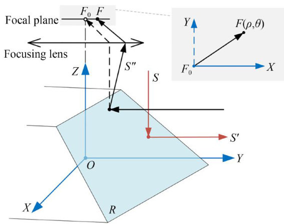 Abstract: In mechanical scanning LiDAR,high-speed mirror rotation during long-distance detection in duces an echo lag angle,causing image point deviation from the detector center and limiting the Optical Scanning Effctive Detection Range (OSEDR). A detector position matching method via scanning mirror speed control was proposed. First,a quantitative OSEDR model was established to describe the relationship among image point ofset, scanning mirror rotation speed,target distance/azimuth,and optical system parameters. Then,based on the model,the rotation speed of the scanning miror was adjusted,allowing conventional stable targets to serve as the feedback benchmark,replacing the specific long-distance tar gets required in traditional methods for detector position matching. Experimental results on a tower-based mirror scanning LiDAR system show that at the rated speed of 50r/s ,the maximum detection range increases from 1020m to 2000m ,with an improvement of approximately 96% ,meeting the theoretical detection range requirements. Moreover,the point clouds within this range are continuous and stable without obvious gaps. This method expands the selection of available feedback targets during debugging and pro vides a reliable and efficient approach to detector position matching in the assembly and alignment of mechanical scanning LiDAR systems.