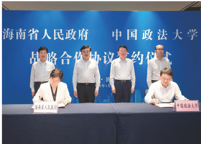 2025年4月28日,中国政法大学与海南省政府签署战略合作协议,并举行海南自贸港法治研究院、揭牌仪式