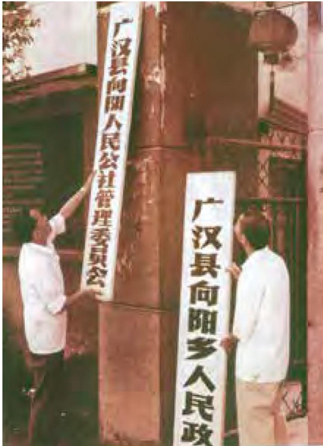 广汉县向阳人民公社管理委员会摘牌(广汉市地方志编纂中心/供图)