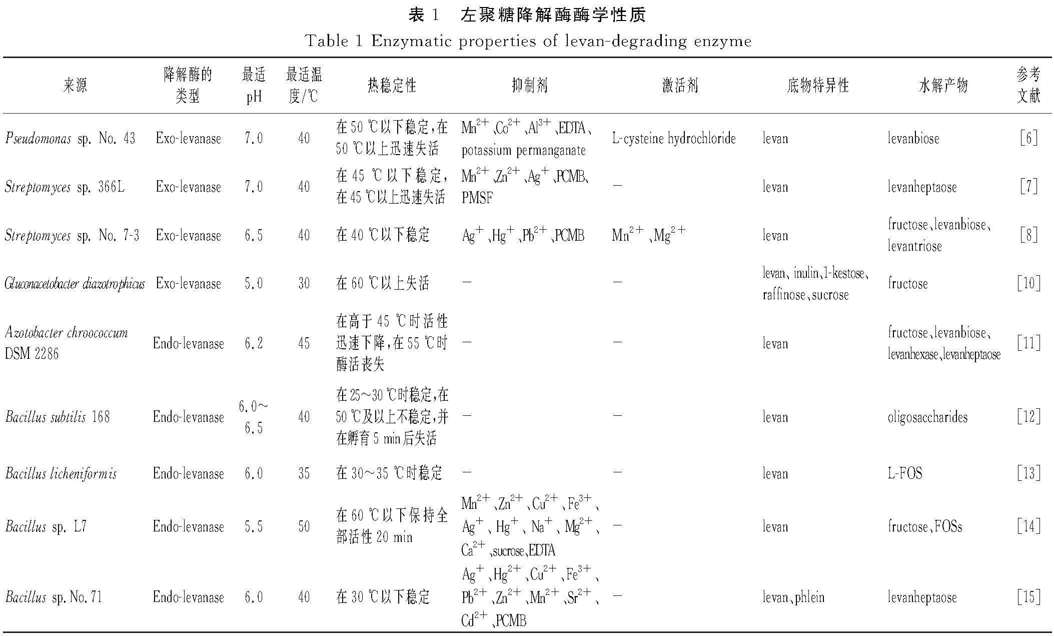 摘要:左聚糖来源于单子叶植物和微生物,在细菌中分布最广泛。左聚糖是由β-2,6-糖苷键连接的D-果糖残基作为主链,以一些β-2,1-糖苷键连接作为支链组成的果聚糖。左聚糖降解酶分为3种类型:左聚糖酶(levanase)[EC3.2.1.65]、左聚糖生物水解酶(β-2,6-fructan 6-levanbiohydrolase,LF2ase)[EC3.2.1.64]和左聚糖果糖转移酶(levan fructotransferase,LFTase)[EC4.2.2.16]。(剩余11212字)