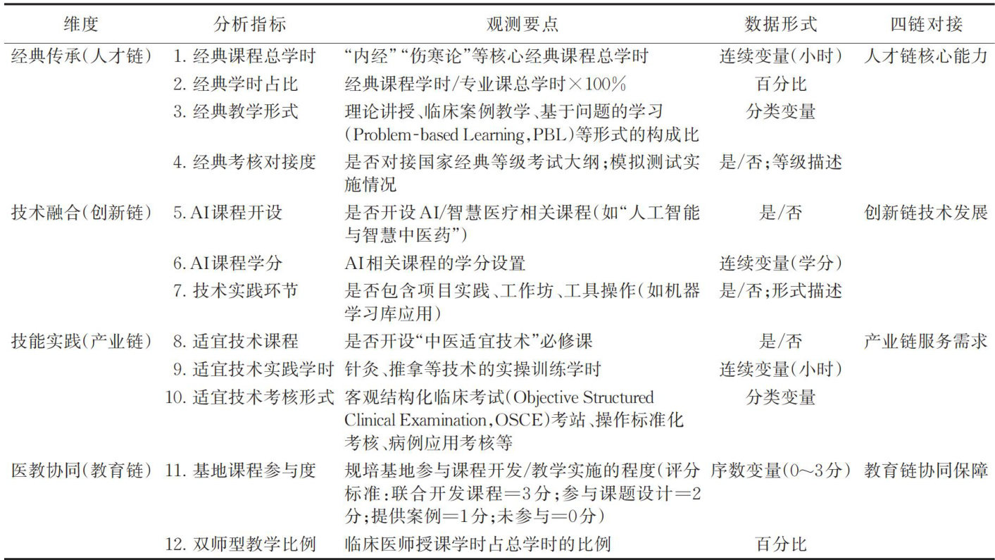 Abstract: Objective Under the background of medical education collaboration,this study aims to construct a “three-stage restructuring” model centered on post competency. The model promotes deep coupling between the curriculum system of Master of Chinese Medicine with professional degree and the medical “four-chains”(talent chain,innovation chain,industry chain,education chain),enhancing the alignment of talent cultivation with industry needs. Methods Policy evidence-based method (analyzing 36 national and ministerial policy texts from 2Ol8 to 2024) and case comparison method (comparing training programs from 8 universities across 5 regions) were used to diagnose the existing problems. Based on systems theory and synergy theory,a three-stage restructuring path of“classic enhancement,AI empowerment,and skill expansion” was designed,and the coupling mechanism was elucidated. Results Policy and case analyses revealed that classical courses accounted for only 12.3% of total hours (<15% ),while absence rates for AI and appropriate technology courses reached 87.5% and 75.0% ,respectively. The model established a closed loop of“demand identification,curriculum restructuring and collaborative implementation,and feedback optimization”through a three-dimensional classical teaching method of“exegesis,clinical practice,and enlightenment”,an AI application-oriented course package,and an OSCE assessment module for appropriate techniques,achieving precise alignment with four-chains demands. Conclusion The three-stage model systematically resolves the dilemmas of“weakened classical knowledge,technological disconnection,and singular skils”.It constructs a sustainable medical-educational collborative optimization mechanism,providing a replicable curriculum reform paradigm for the Major Project Implementation Plan for Revitalization and Development of Traditional Chinese Medicine (2025).