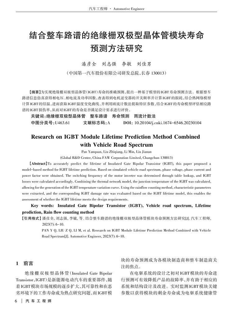 结合整车路谱的绝缘栅双极型晶体管模块寿命预测方法研究