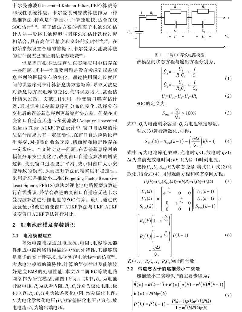 基于改进自适应无迹卡尔曼滤波算法的锂电池荷电状态估计