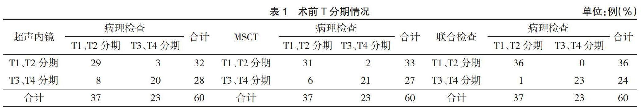 超声内镜联合MSCT检查对膀胱癌术前T分期诊断价值研究