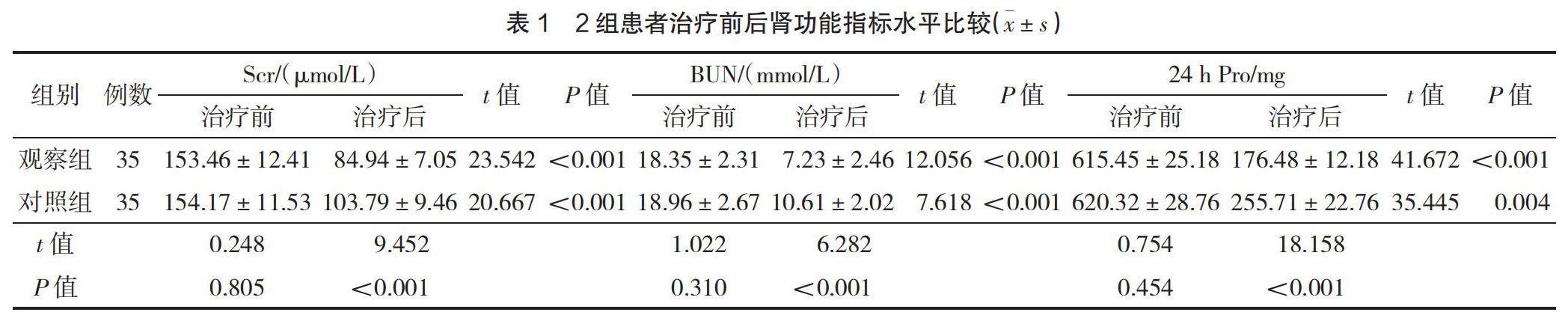 【摘要】 目的 探讨应用肾康注射液治疗高血压肾病的疗效及对患者肾功能的影响。方法 回顾性分析2019年1月—2020年12月德兴市中医院收治的70例高血压肾病患者临床资料,根据治疗方式分为对照组和观察组,对照组35例接受常规降压治疗,观察组35例在常规降压治疗基础上联合肾康注射液治疗,比较2组患者肾功能指标[血清肌酐(serum creatinine,Scr)、血尿素氮(blood urea nitrogen,BUN)和24 h尿蛋白定量(24 h urine protein quantification,24 h Pro)]水平、疗效及各项炎症因子[白细胞介素-6(interleukin-6,IL-6)、C-反应蛋白(C-reactive protein,CRP)、肿瘤坏死因子-α(tumor necrosis factor-α,TNF-α)]水平。(剩余5603字)