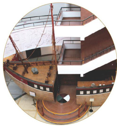 广东华侨博物馆内与楼梯融为一体的“大眼鸡”船模