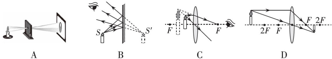 2.下列能用来说明放大镜成像原理的图是( )。