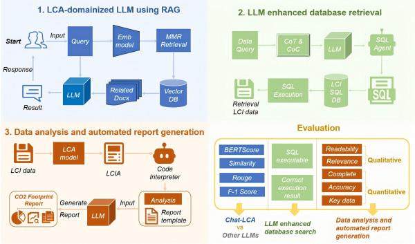 Chat-LCA系统实现了LLM在“知识获取—数据检索—报告生成”全链条的深度融合,显著提升了碳核算的智能化水平。该研究的原创性体现在首次将检索增强生成(RAG)、Text2SQL、思维链(CoT)与代码链(CoC)等前沿AI技术系统整合于LCA全流程,构建了支持自然语言交互的一体化碳核算智能系统。(剩余166字)