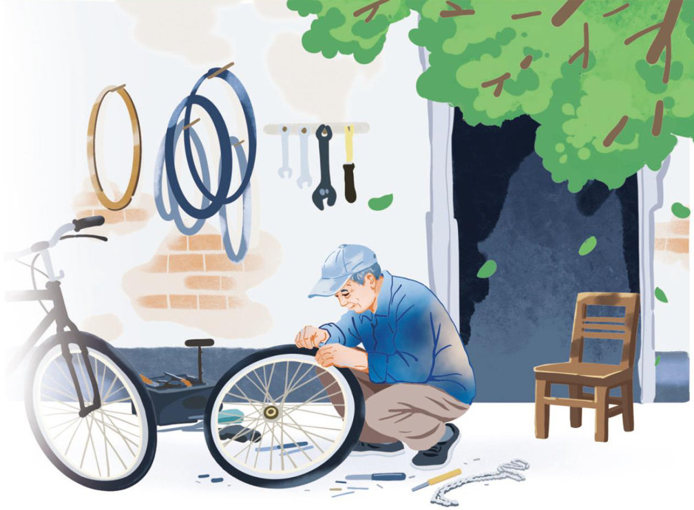 那天放学,我推着爆胎的自行车来到巷口,修车爷爷正坐在那把旧椅子上修理一辆三轮车。(剩余1001字)
