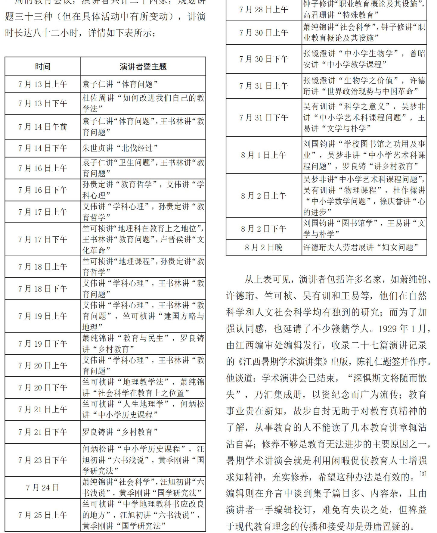 1928年江西暑期学术讲演会的宗旨是利用暑假研究教育、提倡学术,使从事教育之人“得有修养之机会”。(剩余9767字)