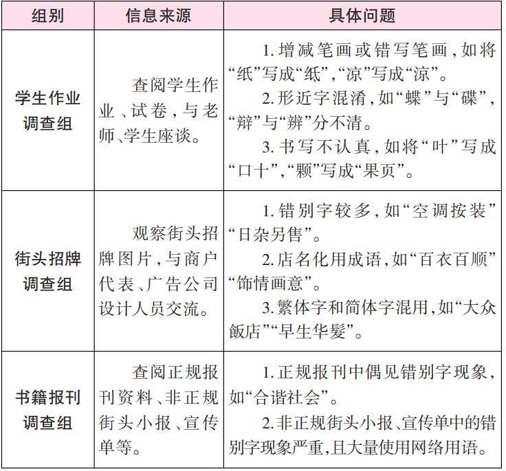 育英小学五(3)班的同学们在认真阅读了《我爱你,汉字》中的材料后,决定根据活动建议,从调查学校、社会用字不规范的现象入手,尝试写一份简单的研究报告。李老师作为此项活动的指导者,记录了他们活动的全过程。