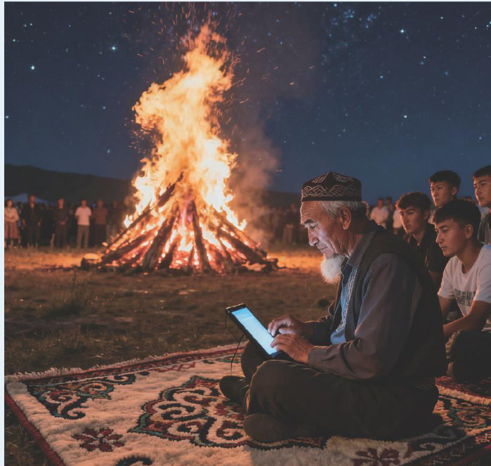 “西迁节”的篝火,在察布查尔深蓝色的夜幕下跃动不息,像一部不眠的史诗。火光映照中,九十岁的锡伯族老人盘腿坐在绣花毡毯上,如同一尊沉静的石雕。他苍老的手指缓缓划过iPad屏幕,那动作既陌生又庄严。屏幕的微光像一片幽蓝的湖水,倒映出他脸上的沟壑,也倒映出一部分正在被数字化的家族记忆。围坐一旁的年轻人目不转晴,仿佛正聆听一场跨越三百年的对话一不是用语言,而是用光与记忆交织的仪式。(剩余4725字)
