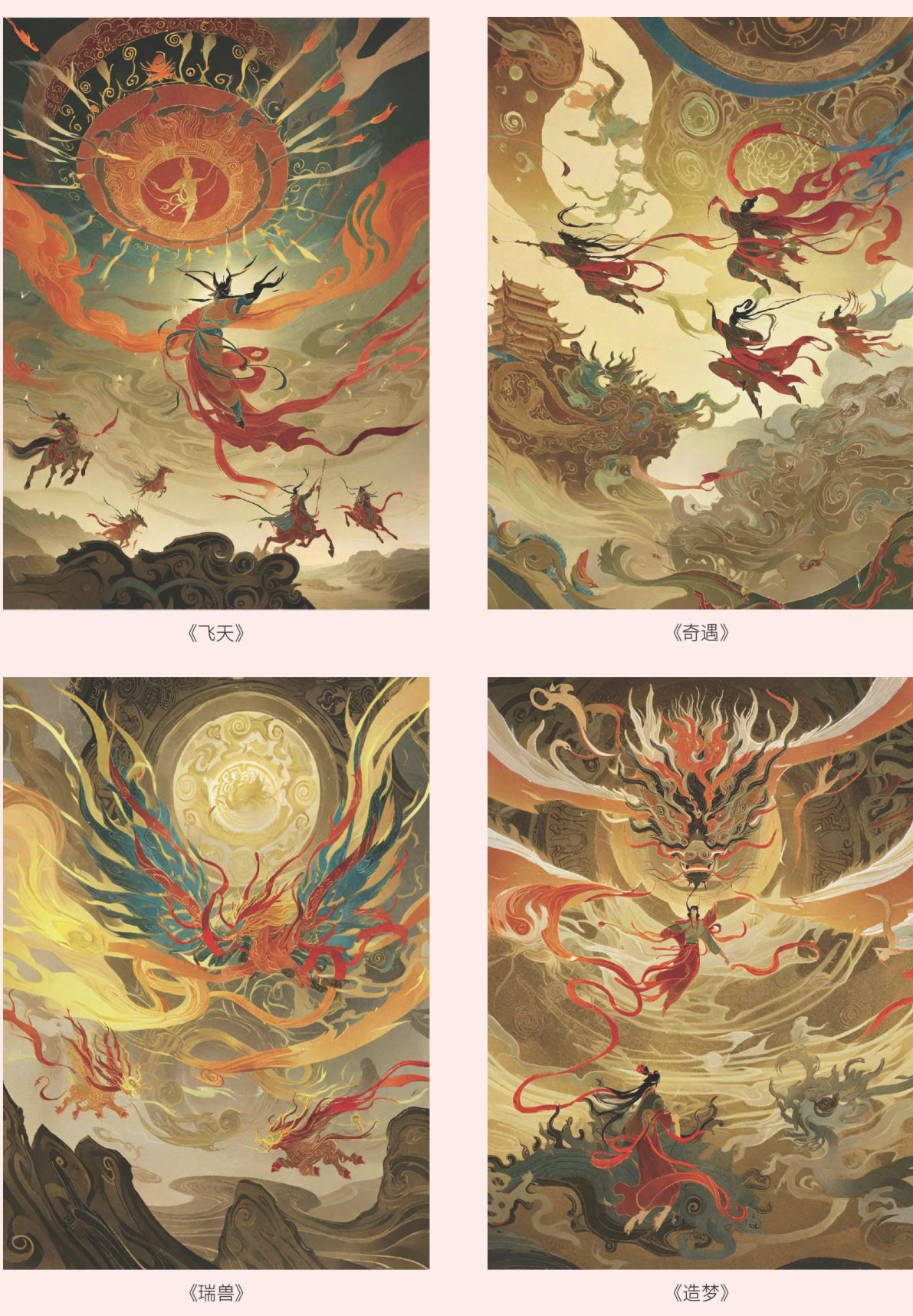 插画设计《飞天》《奇遇》《瑞兽》《造梦》